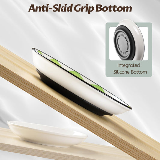 Ceramic Cat Food Bowls - 4 Pack Shallow Plates for Wet Food, Whisker-Friendly Feeding Dish with Non-Slip Silicone Base, Microwave & Dishwasher Safe for Indoor Cats & Kittens