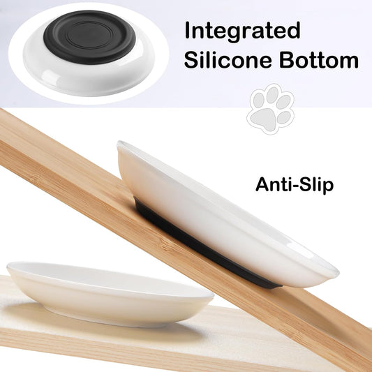 Ceramic Cat Food Bowls - 2 Pack Shallow Plates for Wet Food, Whisker-Friendly Feeding Dish with Non-Slip Silicone Base, Microwave & Dishwasher Safe for Indoor Cats & Kittens