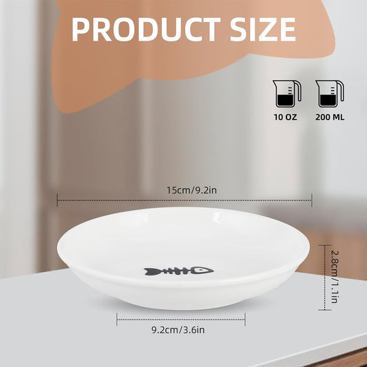 6 Pack Cat Food Bowl, Ceramic Cat Bowls, Anti Whisker Fatigue Cats Bowl Set,5.5 Inches Shallow Wide Kitten Plates for Food and Water (Fishbone Style)
