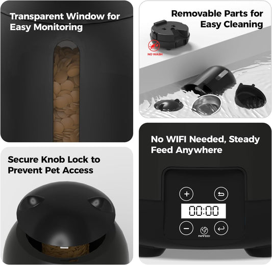 PAPIFEED 2.4G WiFi Automatic Cat Feeder, 6L/25Cup Automatic Pet Feeder with APP Control for Remote Feeding, Detachable for Easy Clean, Cat Food Dispenser with Alexa,1-10 Meals Per Day for Dog, Black