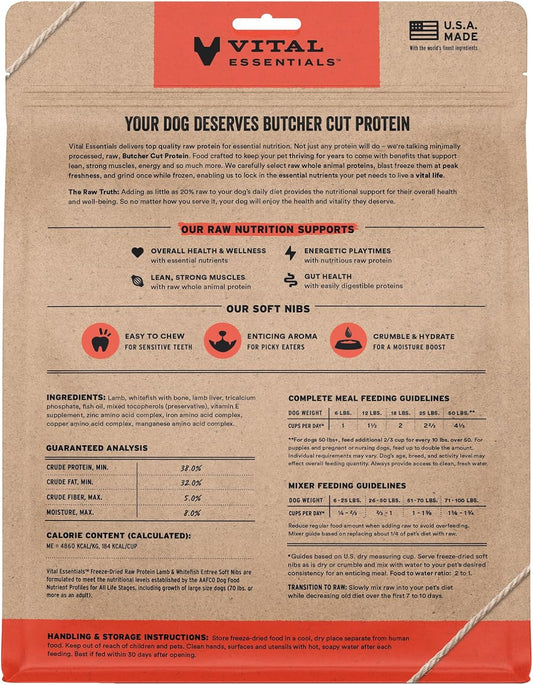 Vital Essentials Freeze-Dried Raw Lamb & Whitefish Meal or Mixer Dog Food Soft Nibs | 99% Lamb, Whitefish, Organs & Bone| 14 oz