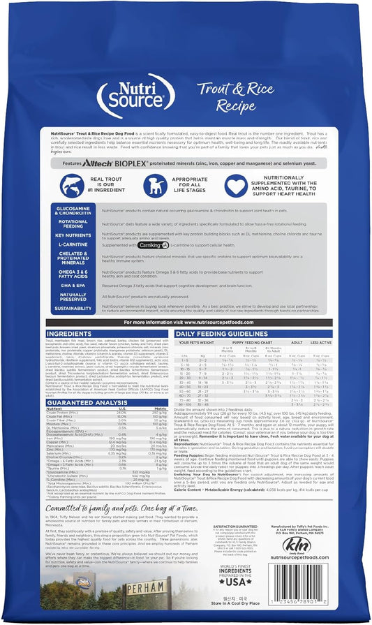 NutriSource Dry Dog Food, Trout and Rice, 12LB