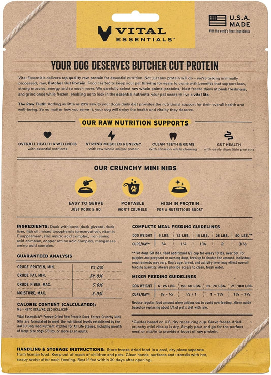 Vital Essentials Freeze-Dried Raw Duck Meal or Mixer Dog Food Crunchy Mini Nibs, 25 oz