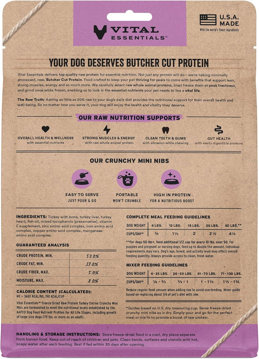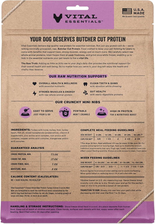 Vital Essentials Freeze-Dried Raw Turkey Meal or Mixer Dog Food Crunchy Mini Nibs, 25 oz