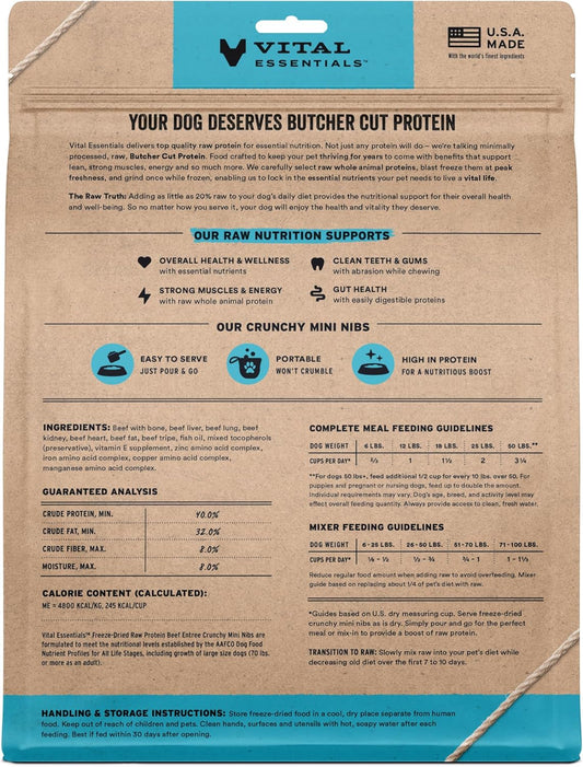 Vital Essentials Freeze-Dried Raw Beef Meal or Mixer Dog Food Crunchy Mini Nibs, 25 oz
