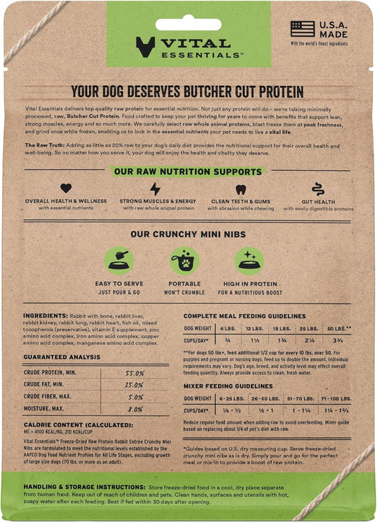 Vital Essentials Freeze-Dried Raw Rabbit Meal or Mixer Dog Food Crunchy Mini Nibs, 25 oz