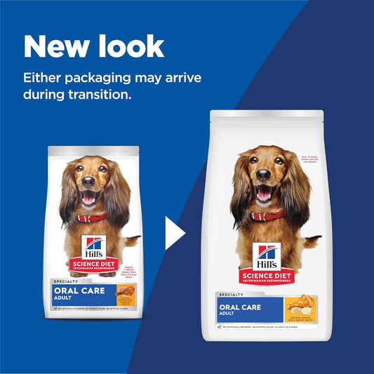 Hill's Science Diet Oral Care, Adult 1-6, Plaque & Tartar Buildup Support, Dry Dog Food, Chicken, Rice, & Barley, 4 lb Bag