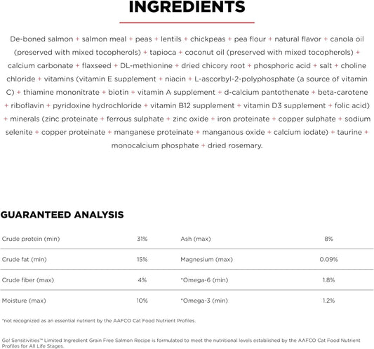 Go! Solutions Sensitivities Limited Ingredient, Grain-Free Dry Cat Food, Salmon Recipe for Sensitive Stomach, 3 lb Bag