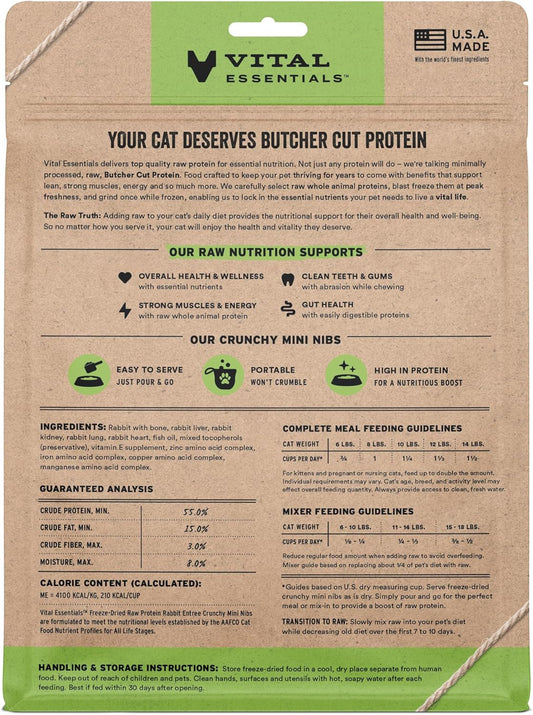 Vital Essentials Freeze-Dried Raw Rabbit Meal or Mixer Cat Food Crunchy Nibs, 8 oz