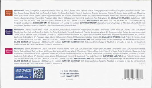 Blue Buffalo Wilderness High Protein, Natural Adult Pate Wet Cat Food Variety Pack, Chicken, Salmon, Turkey 5.5-oz can (24 count - 8 of Each Flavor)