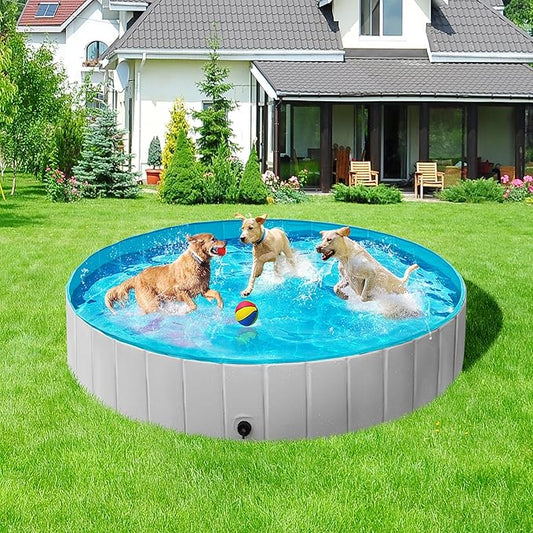 Yaheetech Grey Hard Plastic Dog Pools for Small Medium Large Dogs Puppies Pet Collapsible Bath Pool Tub for Outdoor/Home Use, Pet Repair Patches Included, XL