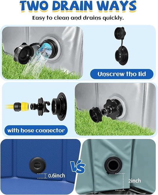 YSJILIDE Portable Dog Pool PVC Pet Swimming Bathtub Collapsible Hard Plastic Pool for Pets to Swim and Bath (XL-63"x 12"Dark Grey)