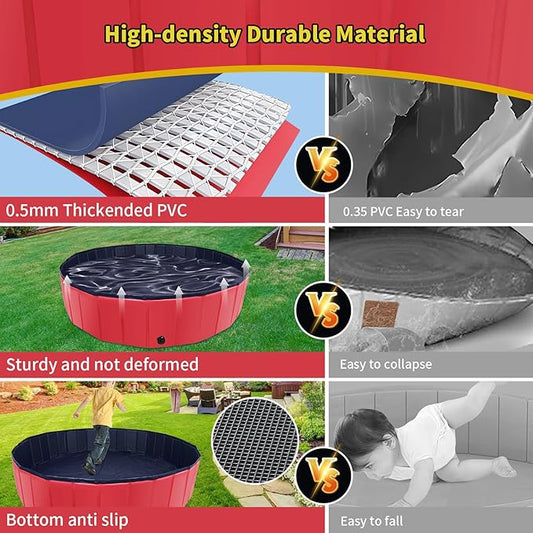 Foldable Dog Pool, 39" x 12" Kiddie Pool with Hard Plastic, Non-Slip Dog Bath Tub for Outdoor Backyard, Collapsible Dog Swimming Pool for Kids Dogs Pets (Red)