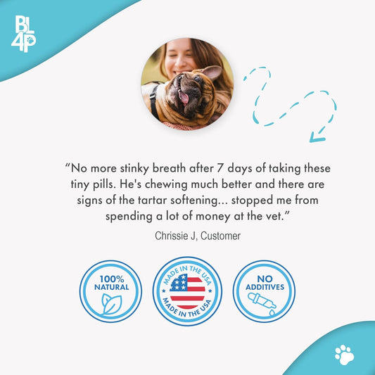 Dog Bad Breath Treatment & Dog Dental Care Solution, Natural Supplement for Canine Oral Health, Canine Tooth Pain Relief, Plaque Control, Gum Disease, Gingivitis, 400 Odorless, Tasteless Pills