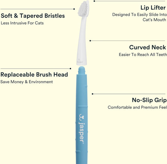 Jasper Microbrush Cat Toothbrush, Soft-Bristled Toothbrush Kit for Felines & Small Dogs, Premium Non-Slip Handle with 2 Replaceable Tooth Brush Heads, Use with Cat Toothpaste
