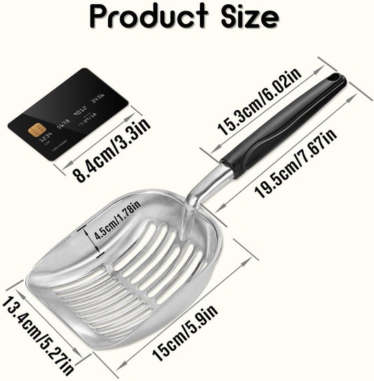 Heavy Duty Stainless Steel Cat Litter Scoop with Holder - Non-Slip Handle, Quick-Sifting Grid & Easy to Clean