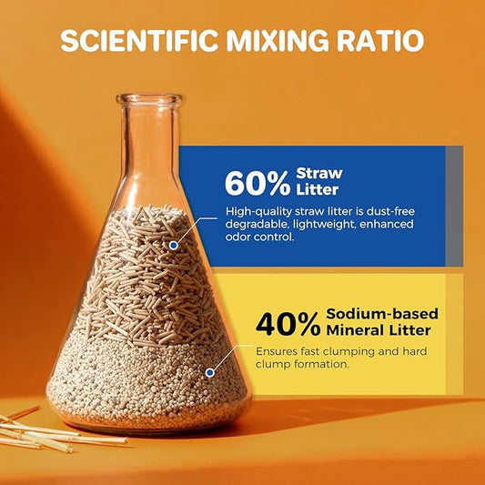 Natural Cat Litter Clumping Cat Litter,36 Pounds Mixed Straw Kitty Litter Lightweight Litter,Dust Free and Low Tracking Litter Odor Control Unscented