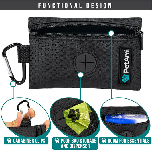 PetAmi Dog Poop Bag Holder for Leash, Dog Waste Bag Dispenser with Clip, Treat Pouch, Walking & Camping Accessories with Trash Bag Roll, Gray/Black 2 Pack