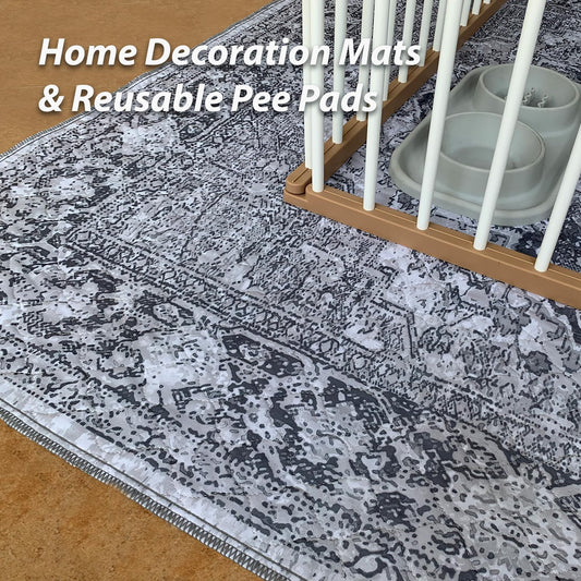 nunubaby Washable Pee Pads for Dogs, Stylish, Non-Slip and Leak-Proof Pee Pads. Reusable Potty Pads for Dogs for Crates and Floors.(Gray/Geo, 36" x72")