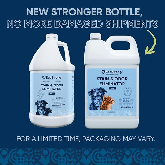 Eco Strong Pet Stain and Odor Remover - Cat Urine Enzyme Cleaner, Urine Destroyer for Dogs, Pet Urine Enzyme Cleaner [All New Fragrance Free] - 128oz