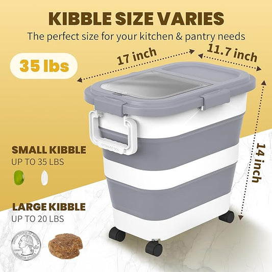 20-50 Lbs Food Storage Containers,Collapsible Rice Container with Wheel Airtight Locking Lid,Flour Storage Container with Small Food Jar and Scoop,Suitable for Food,Rice,Pet Food,Flour
