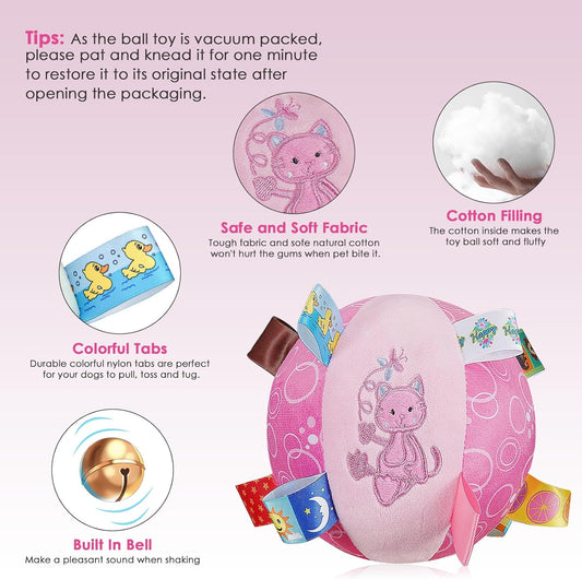 Dog Squeaky Plush Toy with Straps, 6-Inch Soft Stuffed Ball with Cotton Material and Bell Built-in, Pet Interactive Fetch Toy for Small to Large Dog