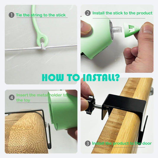 Cat Toys Interactive for Indoor, Cats Toy Hanging Door Electric for Bored,Feather Toy Kitten Rechargeable Door Hanging Automatic String with 4pcs Feather Toys(Green)
