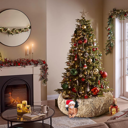 AUOON Cat Tunnel Bed - Cat Donut Tunnel with Soft Plush Circle Cushion for Indoor Cats Kitten Kitty Puppy Rabbit Ferret (Brown)
