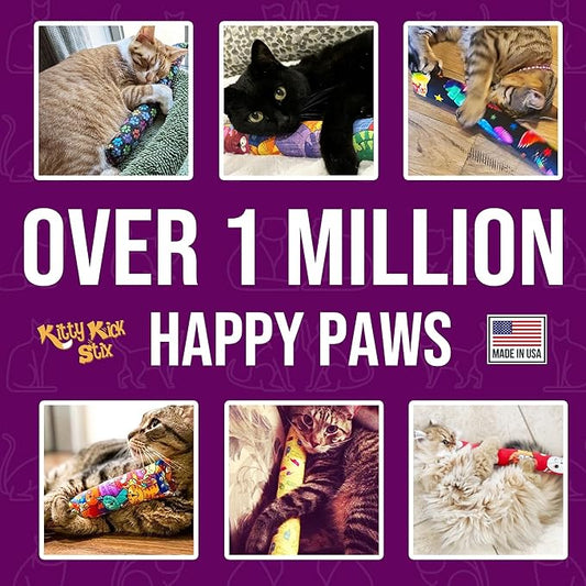 Kitty Kick Stix 15" Catnip Kicker Toy – Set of 2 | Handmade in USA | Interactive Cat & Kitten Toy | Durable Kicker Packed with 100% Potent Catnip for All Breeds (Light/Dark Mix)
