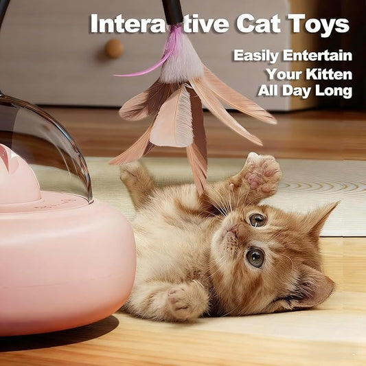 2 in 1 Rechargeable Interactive Cat Toys for Indoor Cats Self Play, Automatic Kitten Toys with Feather Wand and Laser Pointer for Cat Gifts (Cream Coffee)