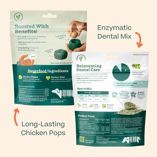 WOOF Dental Kit- Includes Pupsicle Dog Toy, Treat Tray, Shaker Bottle, Chicken Pupsicle Pops, and Dog Teeth Cleaning Powder - Supports Oral Health for Dogs - Small