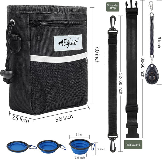 JIURUN Dog Treat Bag - Dog Training Treat Bag, Treat pouchs for Pet Training with Dog Treat Bag, Puppy Training Clicker, Collapsible Dog Bowl, 2 Dog Poop Bag
