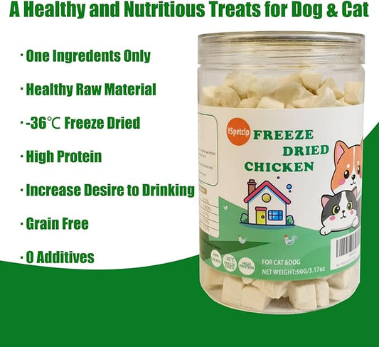 Freeze Dried Chicken Raw Cat and Dog Treats, Healthy Single Ingredient Chicken Breast Cube High Protein Weight Control Traing Treats for Small Dogs Cats Food
