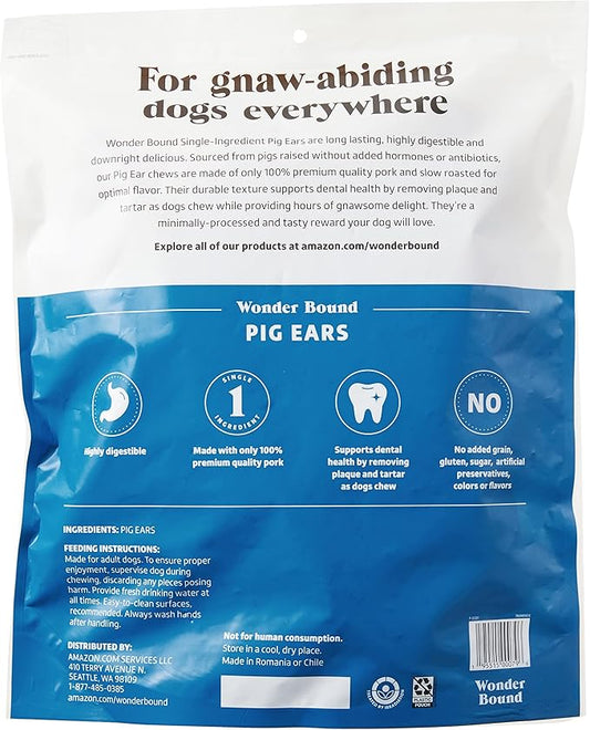 Amazon Brand - Wonder Bound Whole Pig Ears, Single Ingredient, Highly Digestible, Dog Treats for Puppy and Large/Medium Dogs, Pork, 18 count, 12.7 ounce (Pack of 1)