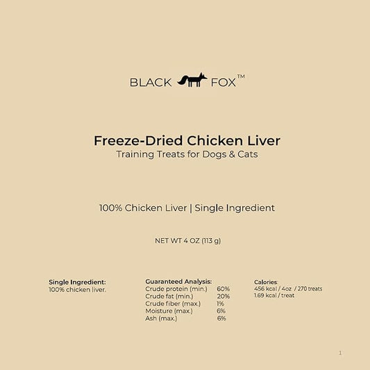 BLACK FOX Freeze-Dried Chicken Liver Training Treats for Dogs and Cats | 270 Treats, 4oz Single Ingredient, Raw, Healthy, All Natural, Human Grade, Recyclable Packaging