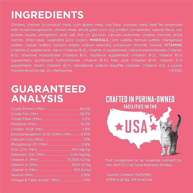 - Feline natural cat food with added vitamins, minerals and nutrients is crafted by a veterinarian-recommended brand in Purina-owned, U.S. facilities with no artificial flavors or preservatives
