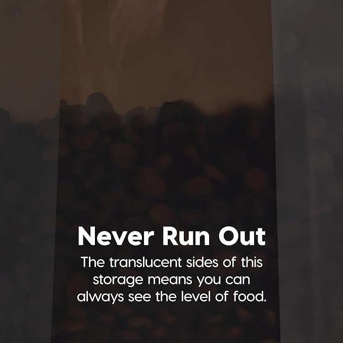 - CLEAR CONTAINER BODY: The translucent body allows you to check the food level in just one glance. Quickly check the remaining amount before you head to the pet store.