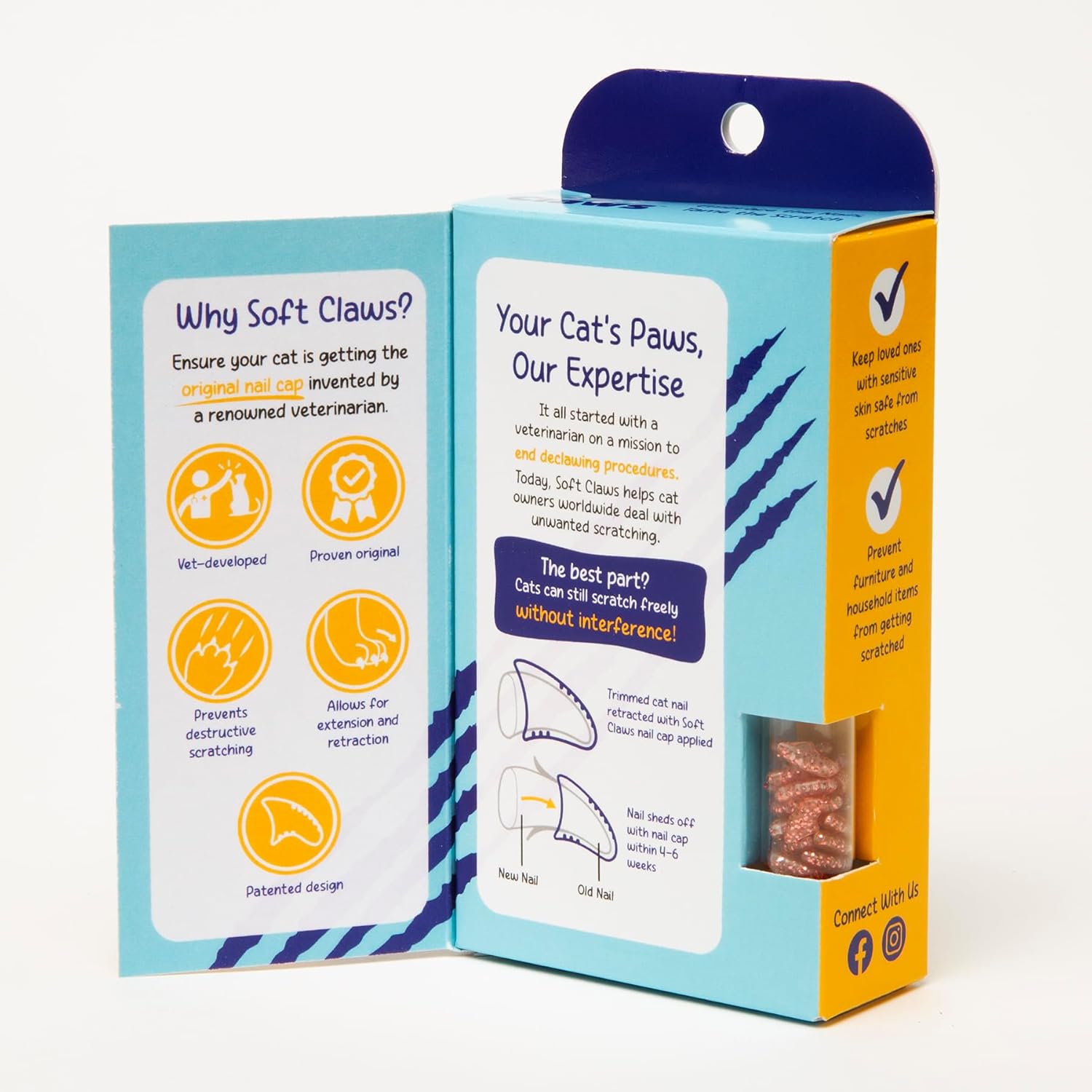 - THE ORIGINAL, USA-MADE NAIL CAP: Soft Claws started it all! Invented by a veterinarian and manufactured in the USA, these nail caps offer a painless, non-surgical solution to destructive scratching. Crafted from durable vinyl and paired with USA-made safe adhesive, they let cats extend and retract their claws naturally—no discomfort, no hassle.
