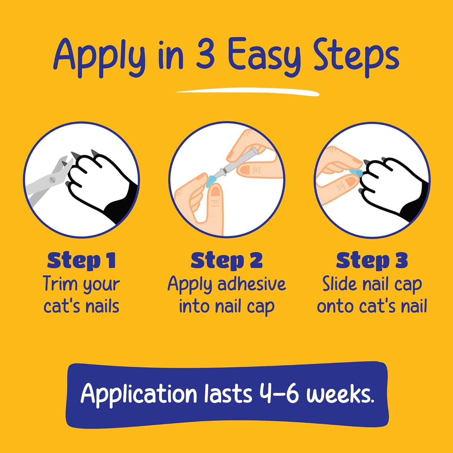 - EASY TO APPLY IN 3 STEPS: Simply trim nails, apply adhesive into cap, and slide onto nail. Each application lasts 4-6 weeks and the soft, lightweight design naturally shed as claws grow, making maintenance effortless. Detailed instructions included for a stress-free application. Veterinarians and groomers love Soft Claws and can also help with application!
