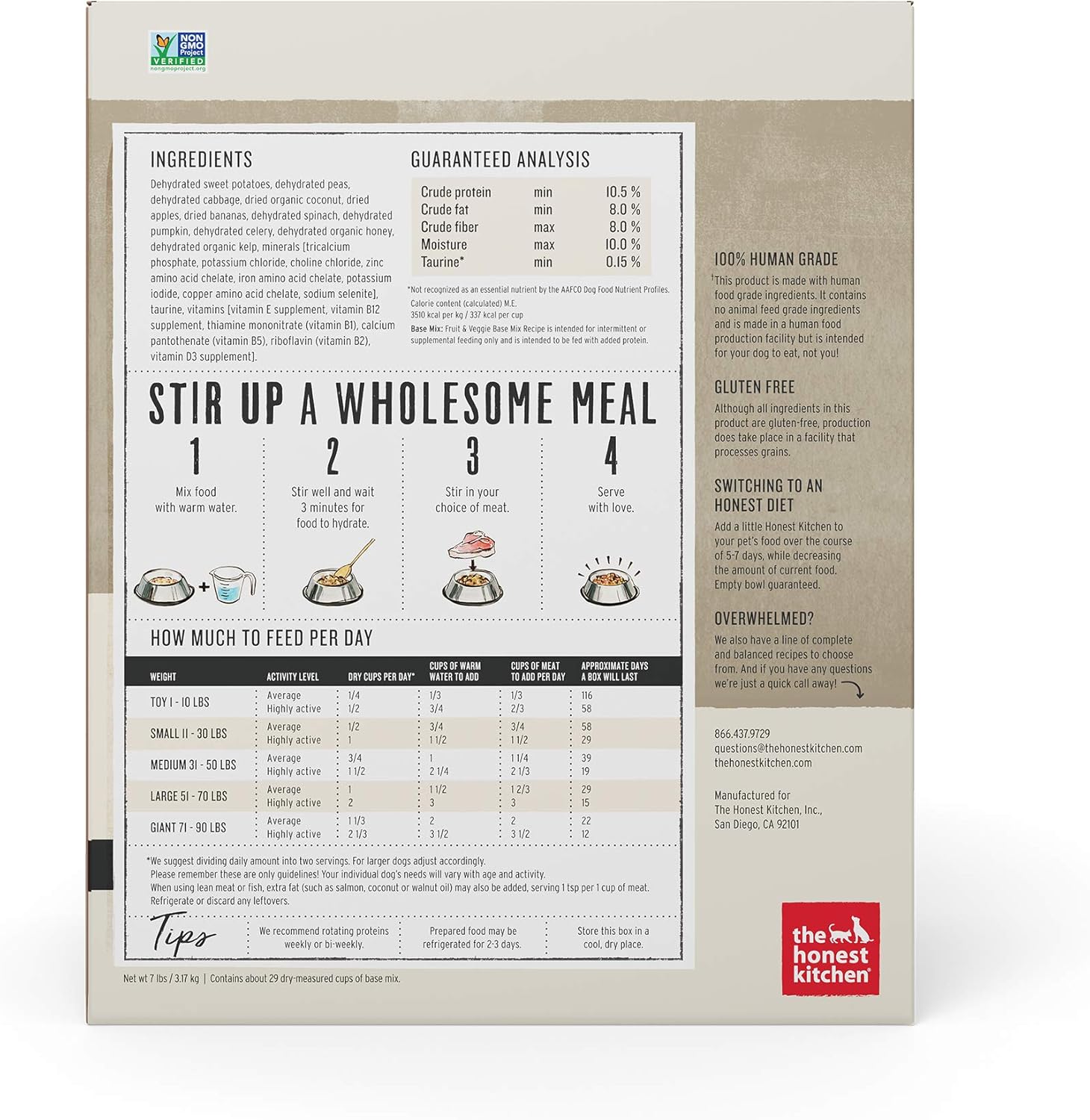 The Honest Kitchen Human Grade Dehydrated Grain Free Fruit & Veggie Base Mix Dog Food (Just Add Protein) - 7 Pound Box (Makes 12 Pounds)