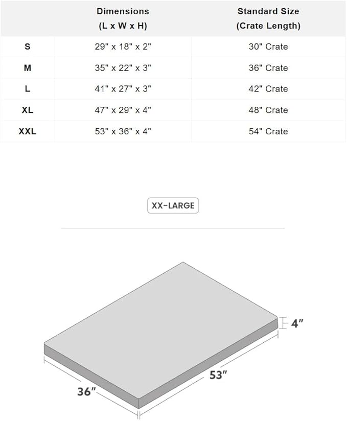 - Orthopedic Support: The solid foam mattress provides dense, firm support for your dog's joints, hips, and spine for optimal comfort in the crate. Unlike egg crate foam and other cheap, flimsy mattresses, our orthopedic crate beds don't lose support or flatten over time, even for the biggest and heaviest of breeds. Mattress thickness varies by bed size, ensuring the perfect balance between comfort and firmness for every dog breed.