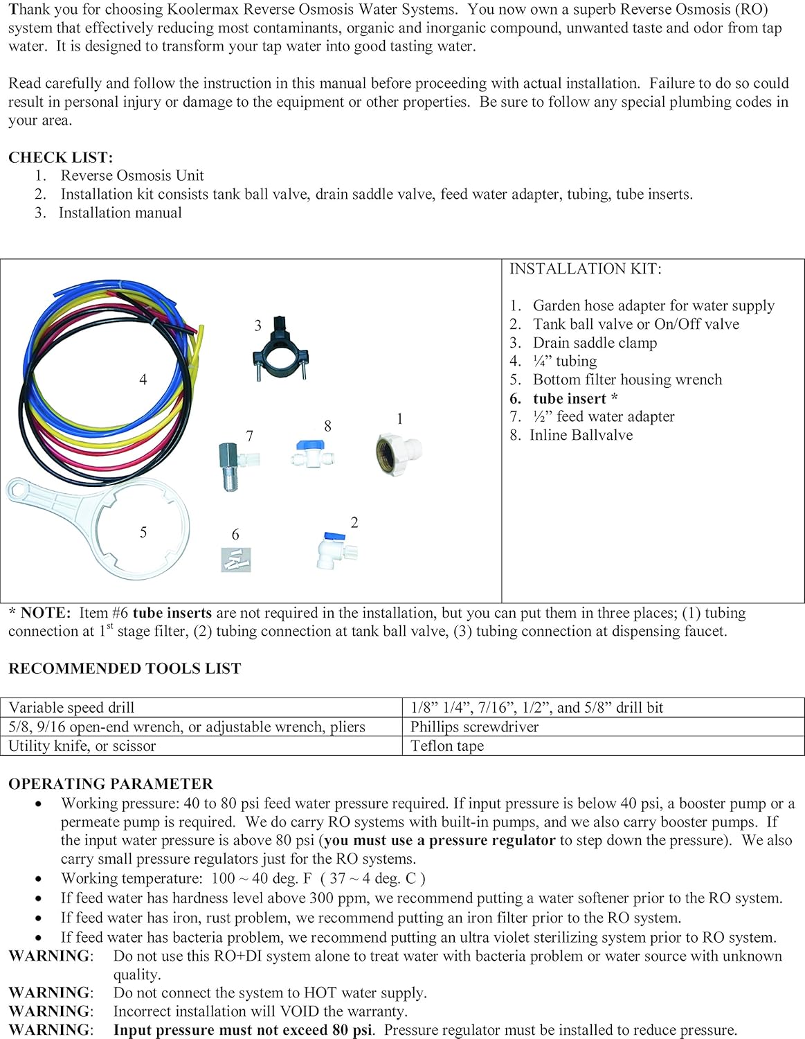 - Included Components Filter, Tubing, Drain Saddle, Inlet Hose, Outlet Hose, RO System, Instruction Manual Filter, Tubing, Drain Saddle, Inlet Hose, Outlet Hose, RO System, Instruction Manual See more : Purification Method Reverse Osmosis