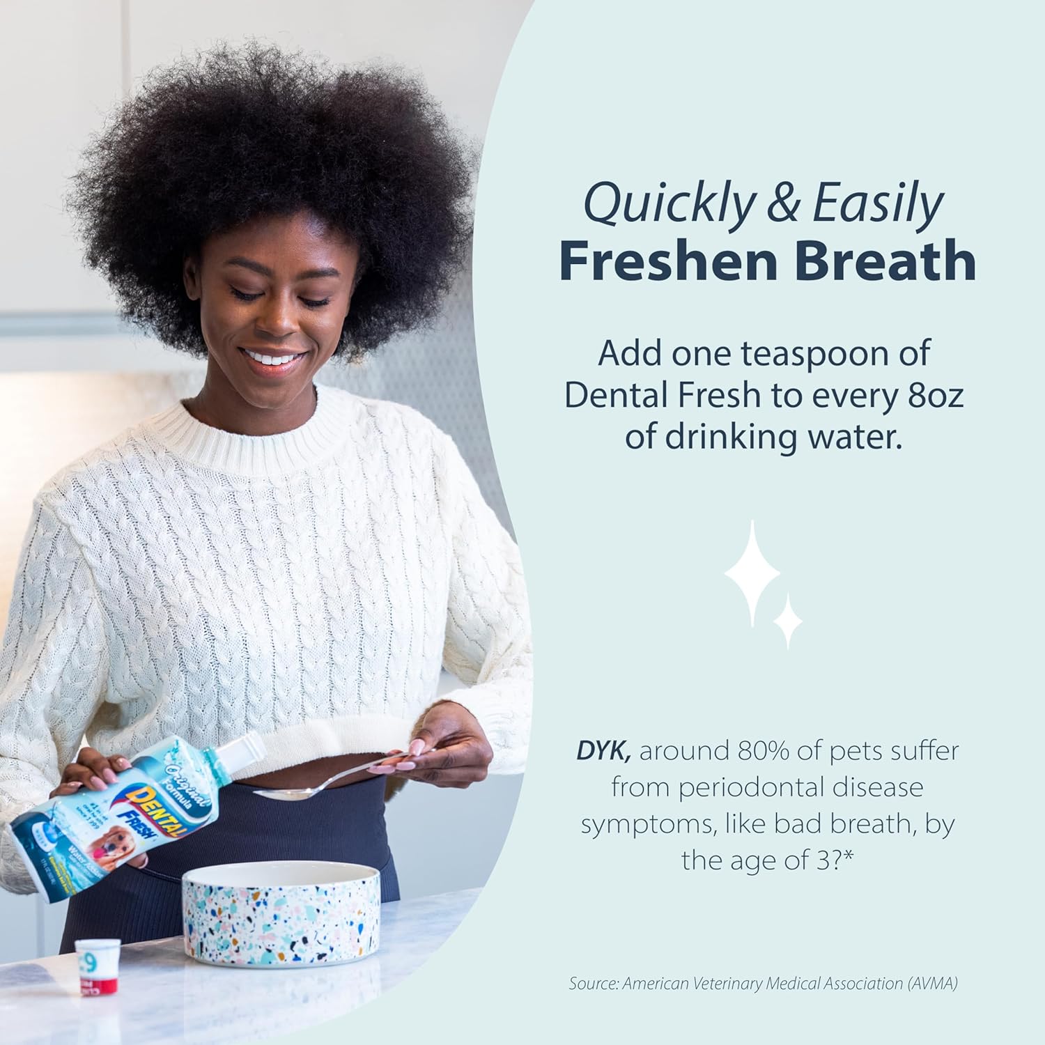 - TOOTHBRUSH IN A BOTTLE – Simple and fast, help care for your pet’s dental health by adding 1 tsp to every 8oz of water. It's like brushing their teeth with every drink.
