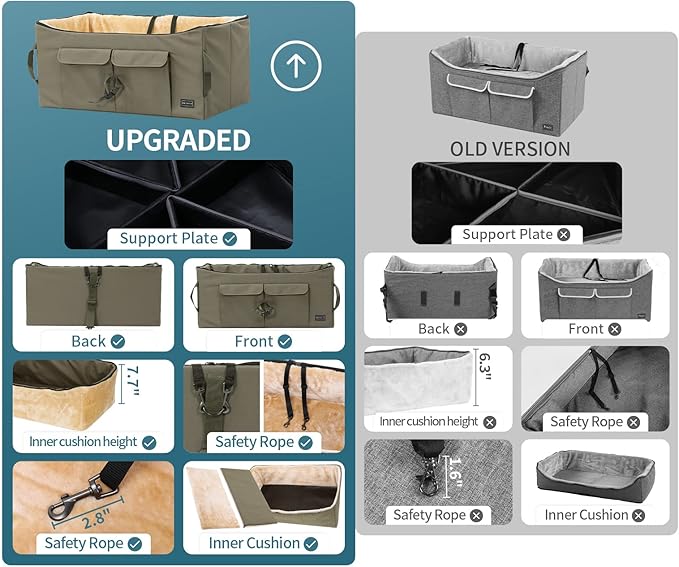 - Reduces distracted driving: The pet car seat large is designed with safety belts to fix the seat to prevent it from sliding in the car, and a ring to hook the dog's harness too so it wont jump out, reducing the possibility of distraction when you driving.