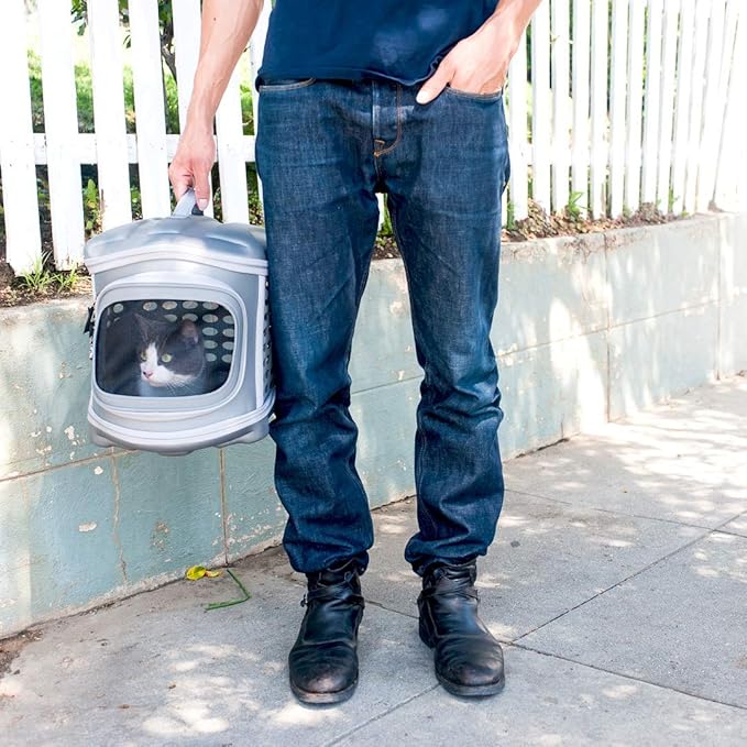 - EASY FOR STORAGE & COMFORTABLE INSIDE: The soft sides can be folded down so the whole carrier fits into a neat little package -- just the top and bottom zippered together. Takes up very little storage space while it's not in use. A padded mat in the floor gives your pet a comfortable place to lie down and a non-slip surface to stand on. A see-through mesh door lets him or her keep an eye on the world outside.