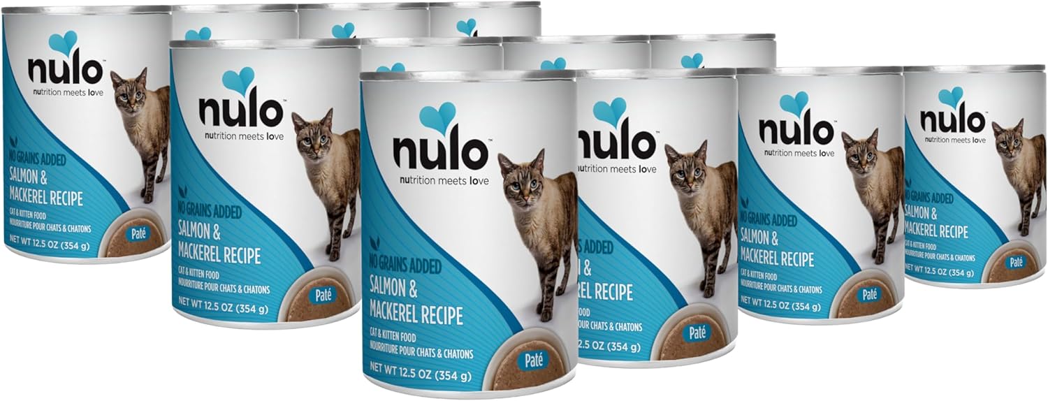 - SALMON & MACKEREL RECIPE - Nulo Freestyle Cat & Kitten Wet Pate Canned Cat Food features our proprietary blend of grain-free proteins and vitamins ideal for cats with diagnosed grain allergies and sensitivities. Pack of 12, 12.5 Oz each.