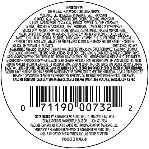 Rachael Ray Nutrish Natural Wet Cat Food, Chicken & Shrimp Pawttenesca Recipe, 2.8 Ounce Cup (Pack of 12), Grain Free (6303370281)