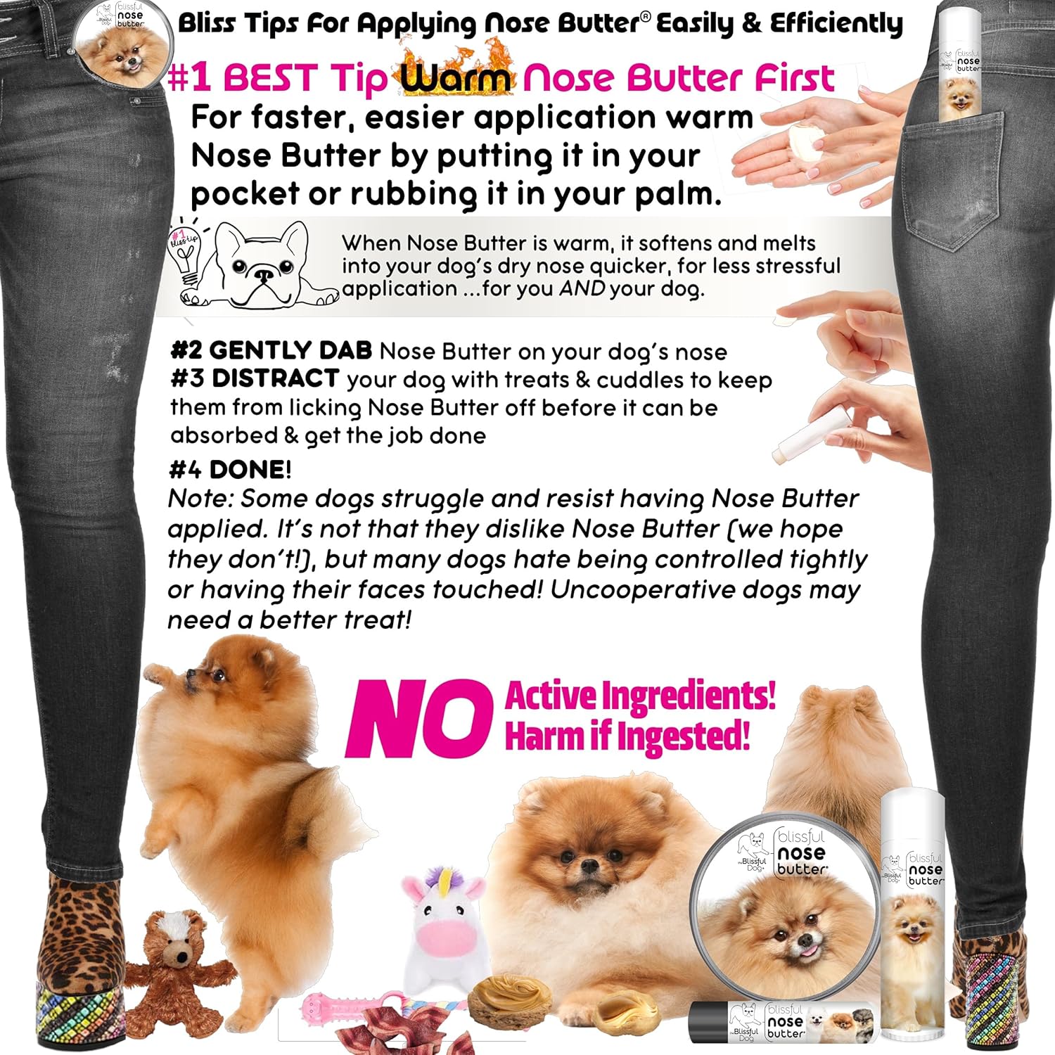 - Easy dog nose care - Easy to apply; Dab onto your dog's nose; that's it! Enriched with shea butter, this dog nose moisturizing butter brings relief to your dog’s dry nose. Non-toxic, no active ingredients, no harm if ingested