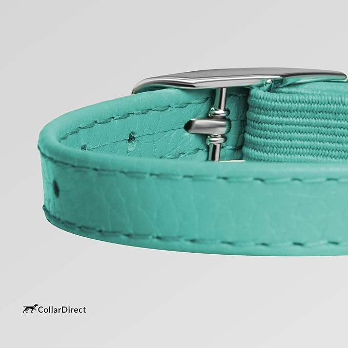 CollarDirect Leather Cat Collar, Cat Safety Collar with Elastic Strap, Kitten Collar with Bell Black Blue Red Orange Lime Green (8-11 Inch, Mint Green)