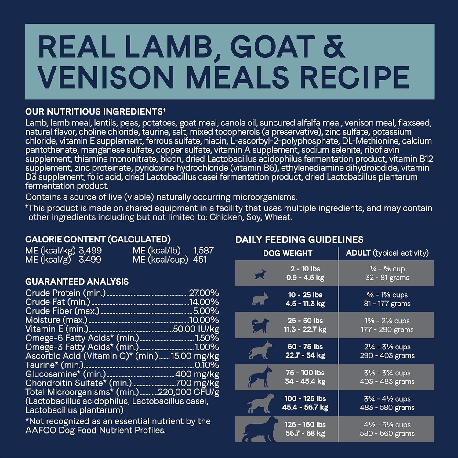 - Real food ingredients for the taste your dog will love. Crafted with real lamb as the first ingredient, paired with whole ingredients like goat and venison meals, peas and lentils